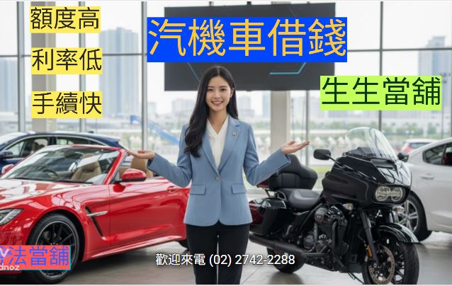 在當今社會,隨著生活成本的不斷增加,許多人可能會遇到資金周轉困難的情況。在這樣的時候,找生生台北當舖利用汽車或機車作為擔保物來借錢,是一個值得考慮的選擇。下面,我們將探討這種方式的幾個主要好處。