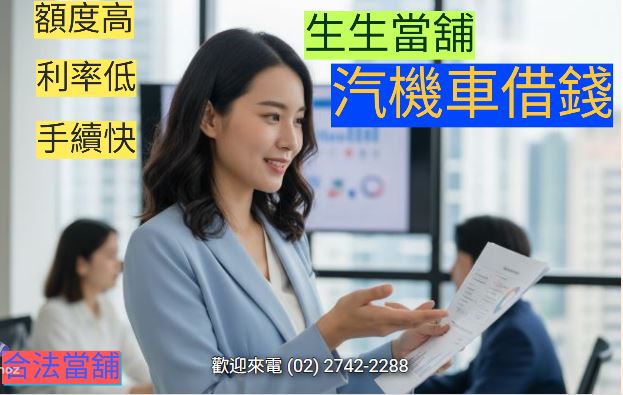 讓你的汽機車變現金!生生台北松山當舖提供最佳借款服務!在繁忙的生活中,尤其是身處於大台北地區,我們常常會面臨一些突發的財務需求。這時,尋找合法的當舖成為了一個迅速而有效的解決方案。生生松山當舖便是您值得信賴的選擇,它提供汽車或機車的借款服務,幫助您輕鬆度過困難的時刻。